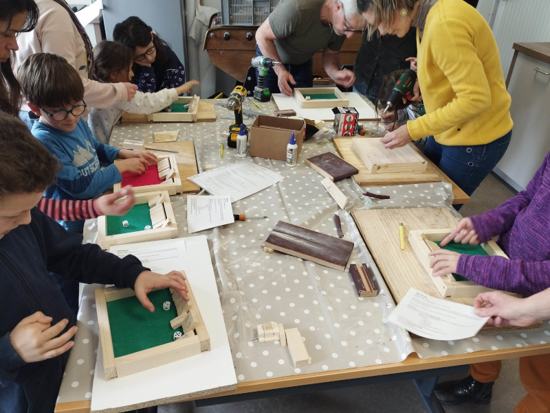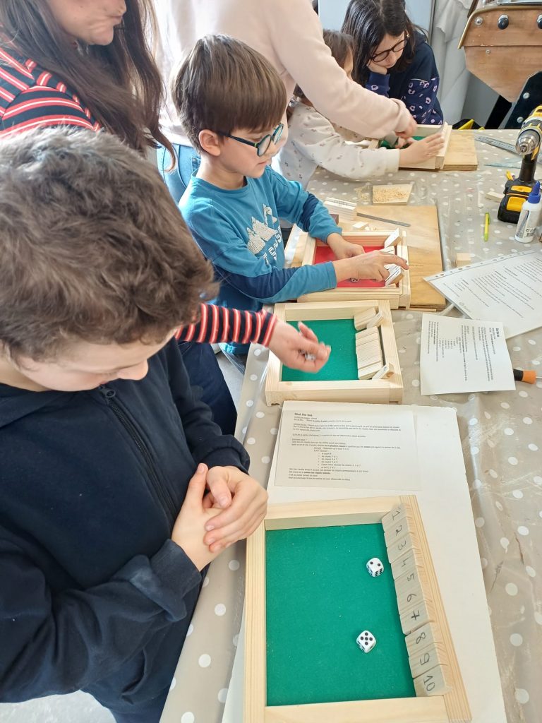 Pendant 2 heures, petits et grands se sont transformés en véritables apprentis menuisiers pour fabriquer leur propre jeu de Shut the Box.